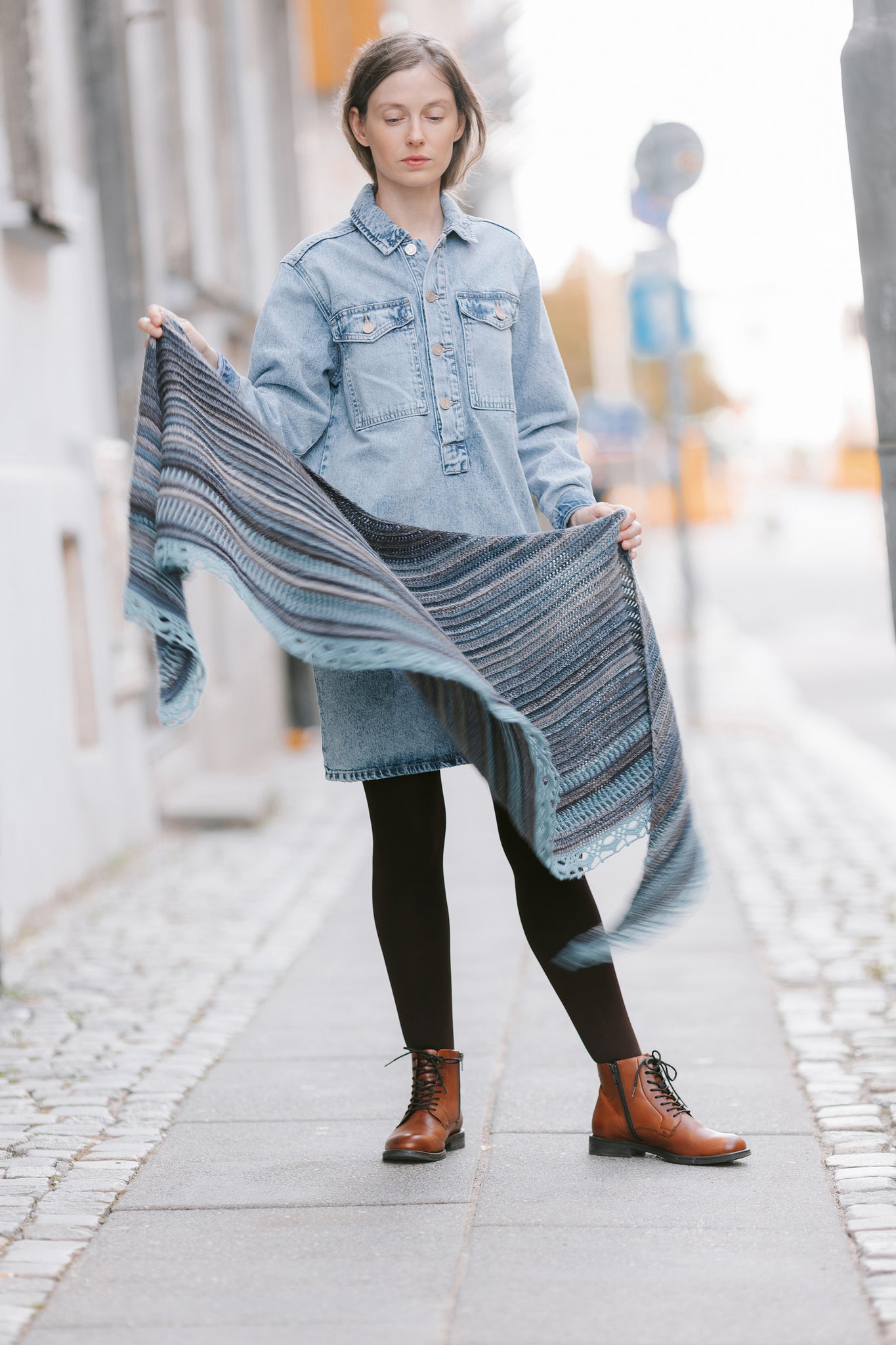Original shawl was made in Scheepjes Unity Lilla Bjorn but it is discontinued so I have left it for you to choose your colors. The first color you choose will be the main color and the second color your border and contrast color